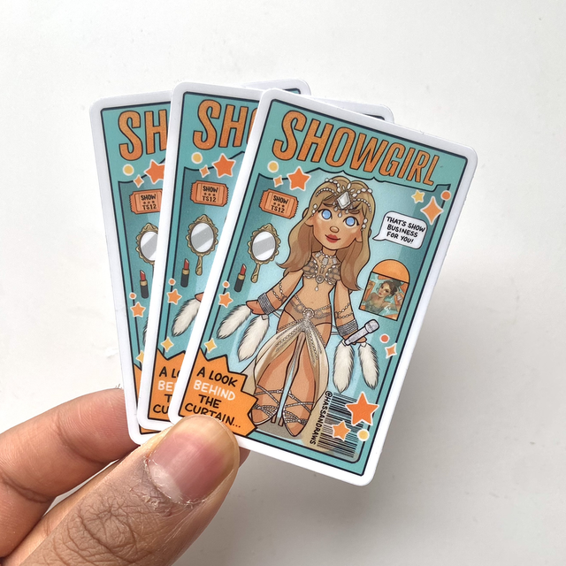 The showgirl is here! 🧡 This pop inspired doll is the perfect gift for any swift or pop music fan 🪩 made from high quality glossy sticker vinyl these stickers are perfect for your laptop, phone case, sketchbooks and water bottles!